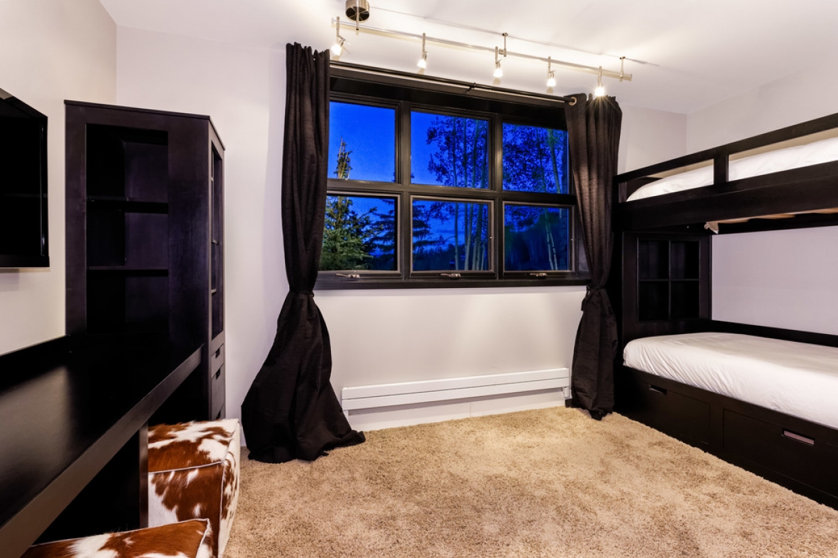 Este Chalé possui 6 quartos e acomoda até 13 pessoas. É ski-in/ski-out com acesso direto em nível iniciante para a Funnel Ski, com uma decoração contemporânea, oferece espaços de entretenimento incríveis e versáteis. Possui jacuzzi ao ar livre, churrasqueira, lareira de madeira, cozinha gourmet e sala de jantar com capacidade para 10 pessoas.